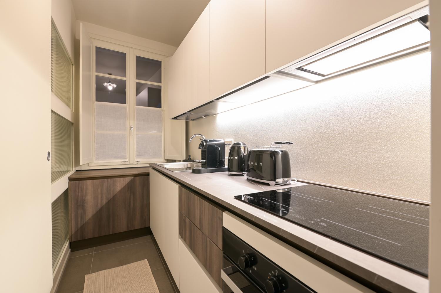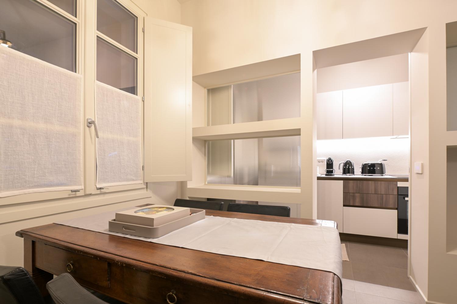 and a separate fully equipped kitchenette, ideal for enjoying a quiet breakfast or a cozy dinner at home.